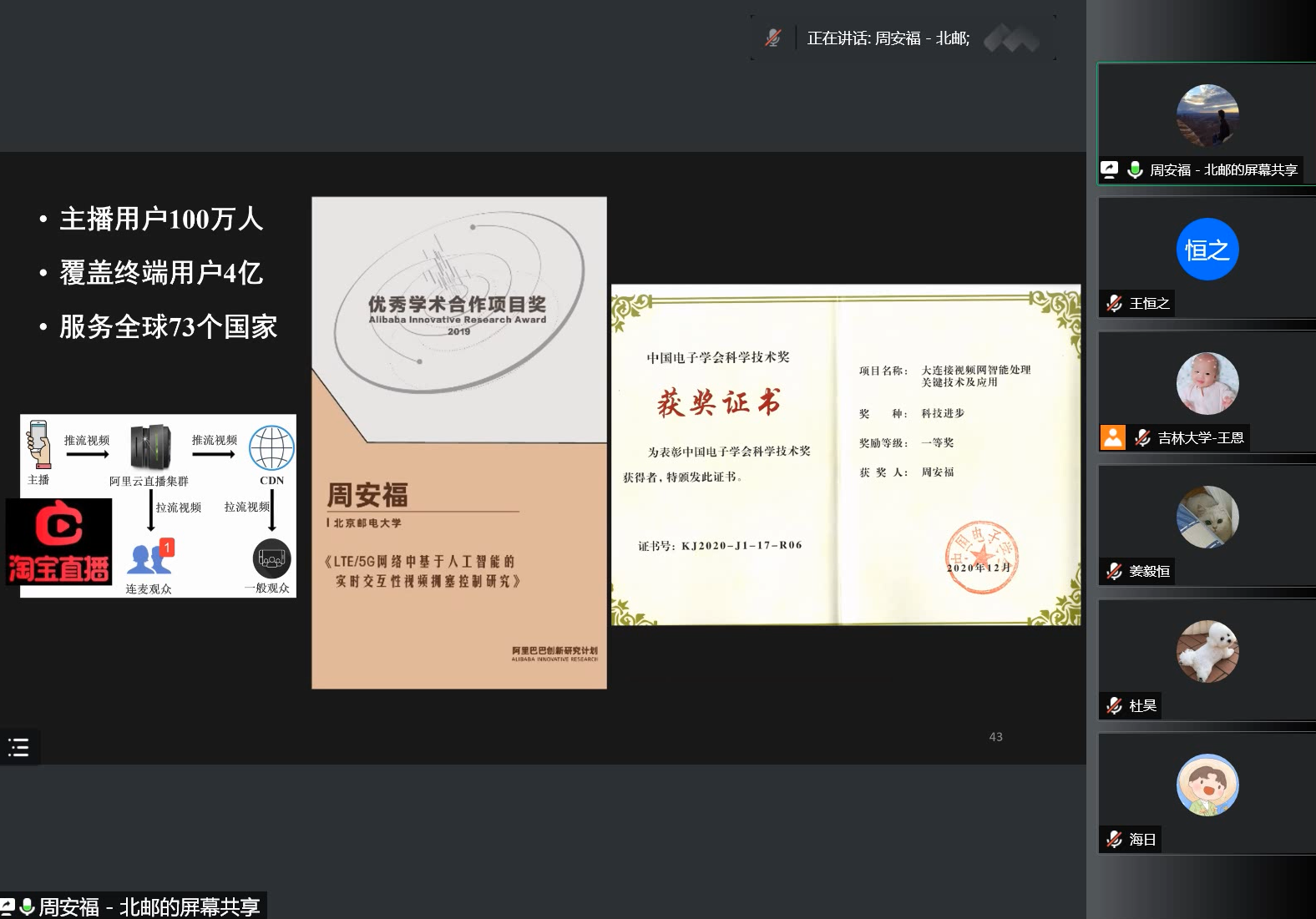 2022年6月2日上午9:30,北京邮电大学周安福教授应304永利集团官网入口邀请,利用腾讯会议作了题为“基于强化学习的低延迟视频传输研究”的学术报告。304永利集团官网入口王恩教授主持了讲座,并对周安福教授的精彩讲座表示由衷地感谢。